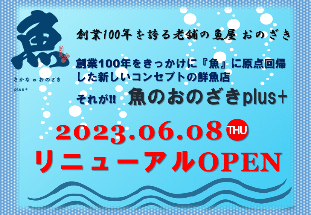 \\2023/06/08 リニューアルOPEN//🐟 創業100年をきっかけに、「魚」に原点回帰したおのざきの新しいコンセプトの鮮魚店『さかなのおのざきplus +』
