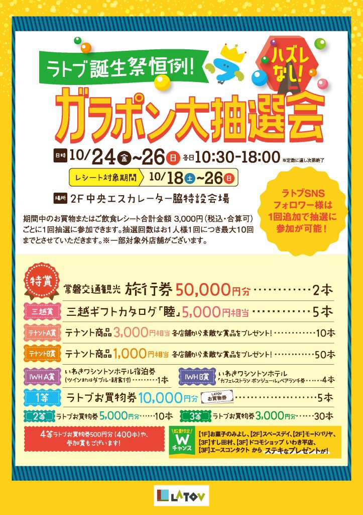 ガラポン大抽選会を10/24(金)~10/26(日)開催❣