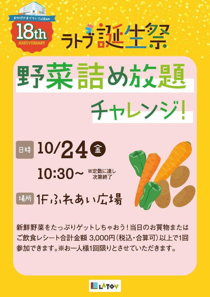 当日10/24(金)、ラトブ館内でお買物・ご飲食をされたレシート3,000円(税込・合算可)ご提示で1回参加できます。