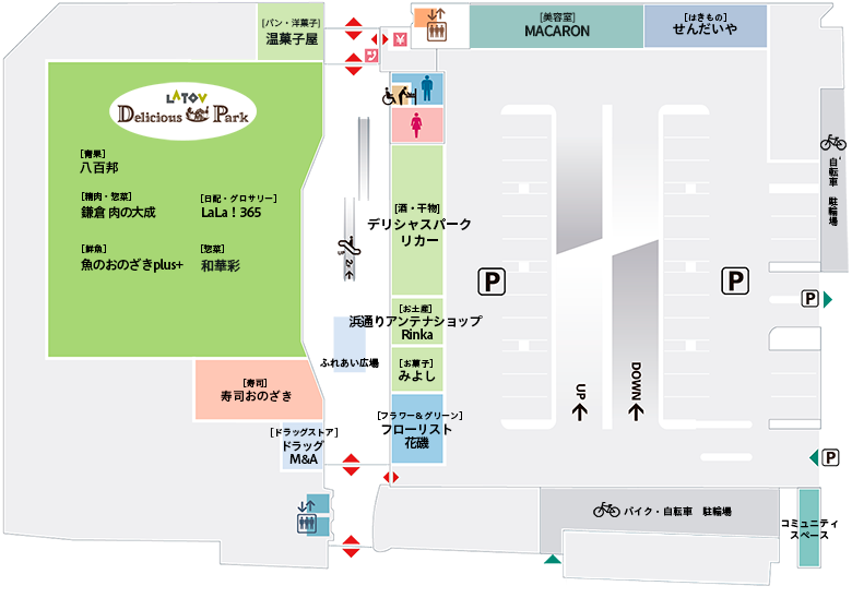 フロアガイド Floor Guide B2F(駐車場) B1F(駐車場) 1F M2F 2F 3F 4F 5F 6F 7F 8F 1F 鮮魚・精肉・青果・酒・くすり・いわき横丁 男女トイレ 駐輪場 駐車場 ATM みんなのトイレ ベビーシート エスカレーター エレベーター 公衆電話 1F ショップリスト 和華彩 FLOOR 1F OPEN 10:00~20:00 CATEGORY / 食料品 温菓子屋 ラトブ店 FLOOR 1F OPEN 10:00~18:00 定休日:毎週火曜日・第2水曜日 CATEGORY / 食料品 八百邦ラトブ店 FLOOR 1F OPEN 10:00~20:00 CATEGORY / 食料品 MACARON FLOOR 1F OPEN 9:00~19:00 CATEGORY / 美容・医療 Latovalue marketLaLa!365 FLOOR 1F OPEN 10:00~20:00 CATEGORY / お菓子・お土産 / 食料品 浜通りアンテナショップ Rinka FLOOR 1F OPEN 10:00~20:00 CATEGORY / お菓子・お土産 / 食料品 ラトブ Delicious Park‐デリシャス パークー FLOOR 1F OPEN 10:00 ~ 20:00 CATEGORY / お菓子・お土産 / 食料品 魚のおのざきplus+ FLOOR 1F OPEN 10:00~20:00 CATEGORY / 食料品 フローリスト花磯 FLOOR 1F OPEN 10:00~20:00 CATEGORY / 生活雑貨・インテリア / ホビー・カルチャー お菓子のみよし FLOOR 1F OPEN 10:00~20:00 CATEGORY / お菓子・お土産 / 食料品 寿司 おのざき FLOOR 1F OPEN 【昼】11:00~15:00【夜】16:30~21:00 CATEGORY / レストラン・カフェ 鎌倉 肉の大成 FLOOR 1F OPEN 10:00~20:00 CATEGORY / 食料品 せんだいや履物商店 FLOOR 1F OPEN 8:00~18:50 CATEGORY / ファッション雑貨・靴 ドラッグ M&A FLOOR 1F OPEN 10:00~20:00 CATEGORY / 美容・医療