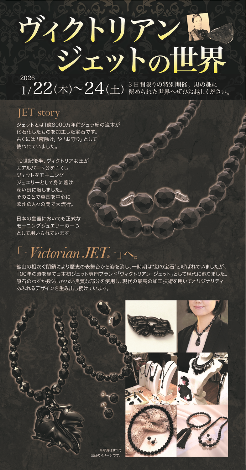 ジュエリーベースでは【1月22日(木)~24日(土)】の3日間限定で、ヴィクトリアンジェットフェアを開催いたします。