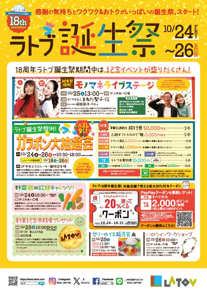 おかげさまでラトブは10月25日で18周年!みなさまへの感謝を込めて、笑顔あふれる誕生祭を開催します!